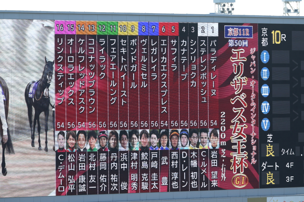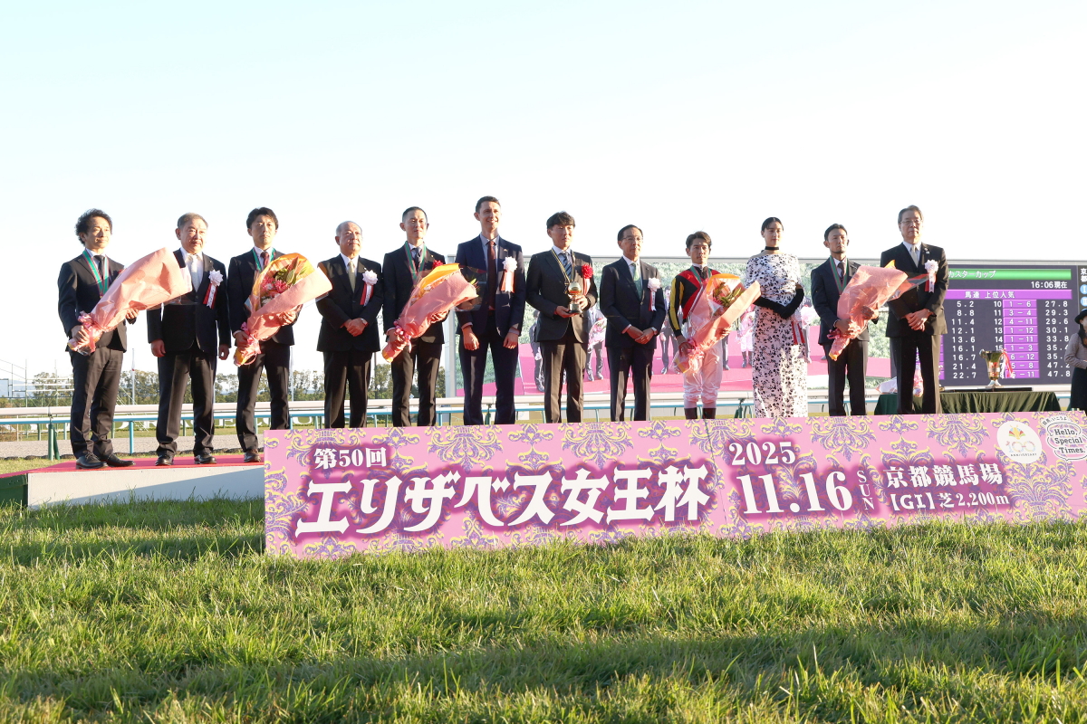 28 Photos11月16日、第50回エリザベス女王杯(芝・外2,200m)が京都競馬場で行われ、1番人気で戸崎圭太騎手騎乗のレガレイラ(牝4:美浦・木村哲也厩舎)が、中団追走から直線外から差し切って優勝。昨年5着の雪辱を晴らした。また馬主の(有)サンデーレーシングは、4年連続同レースの勝利となった。