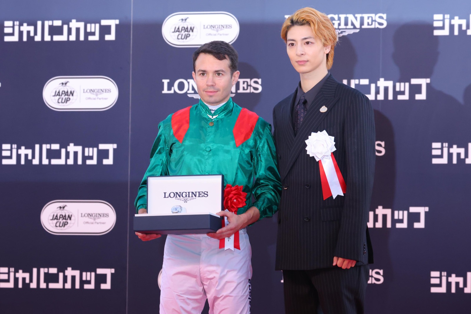 プレゼンターを務めたザ・ロイヤルファミリーで騎手役を熱演中の高杉真宙さんとバルザローナ騎手のフォトセッション