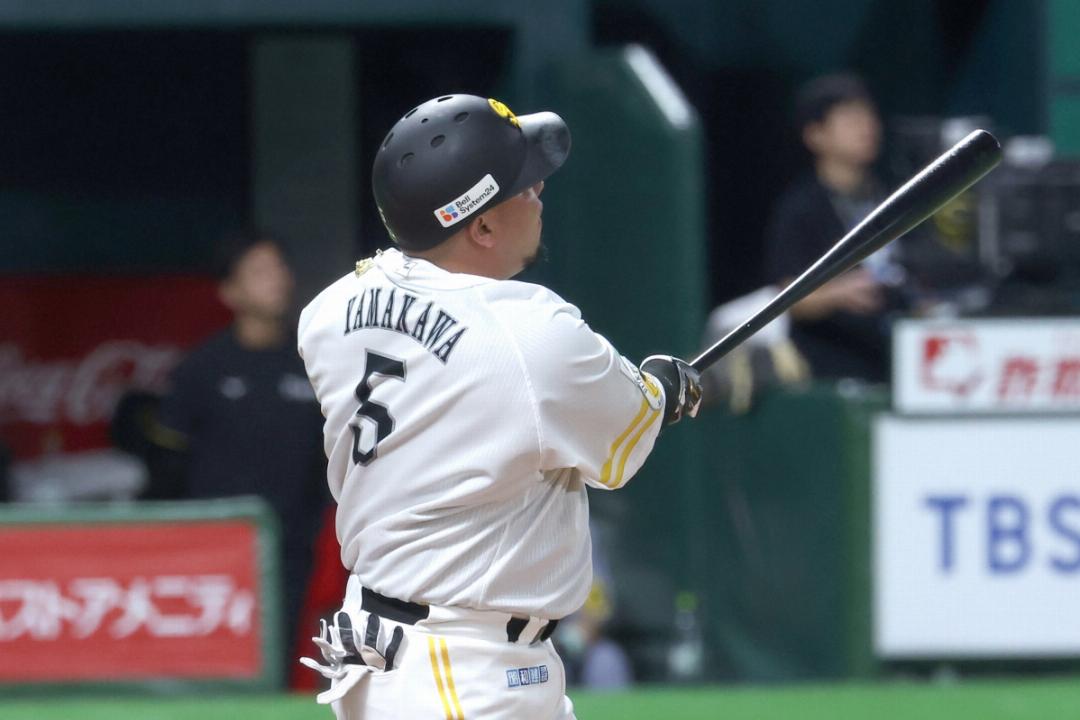 阪神2番手岩貞祐太投手に代わった直後、左中間への3点本塁打を放った山川穂高