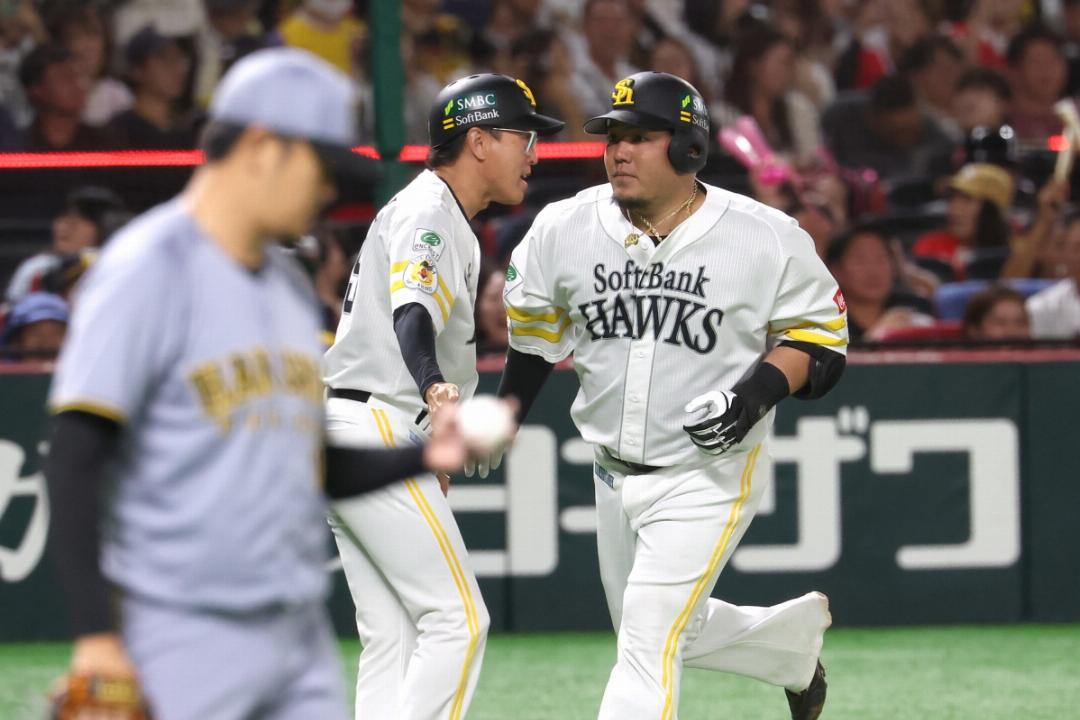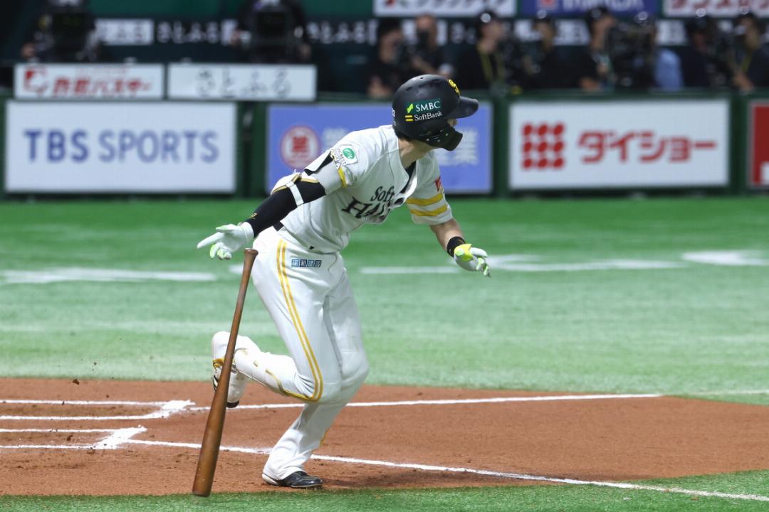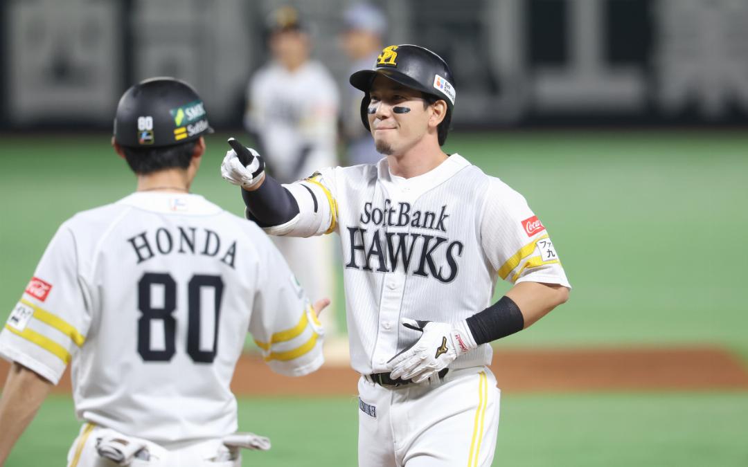 1回裏、栗原陵矢のライト前ヒットで同点としたソフトバンク