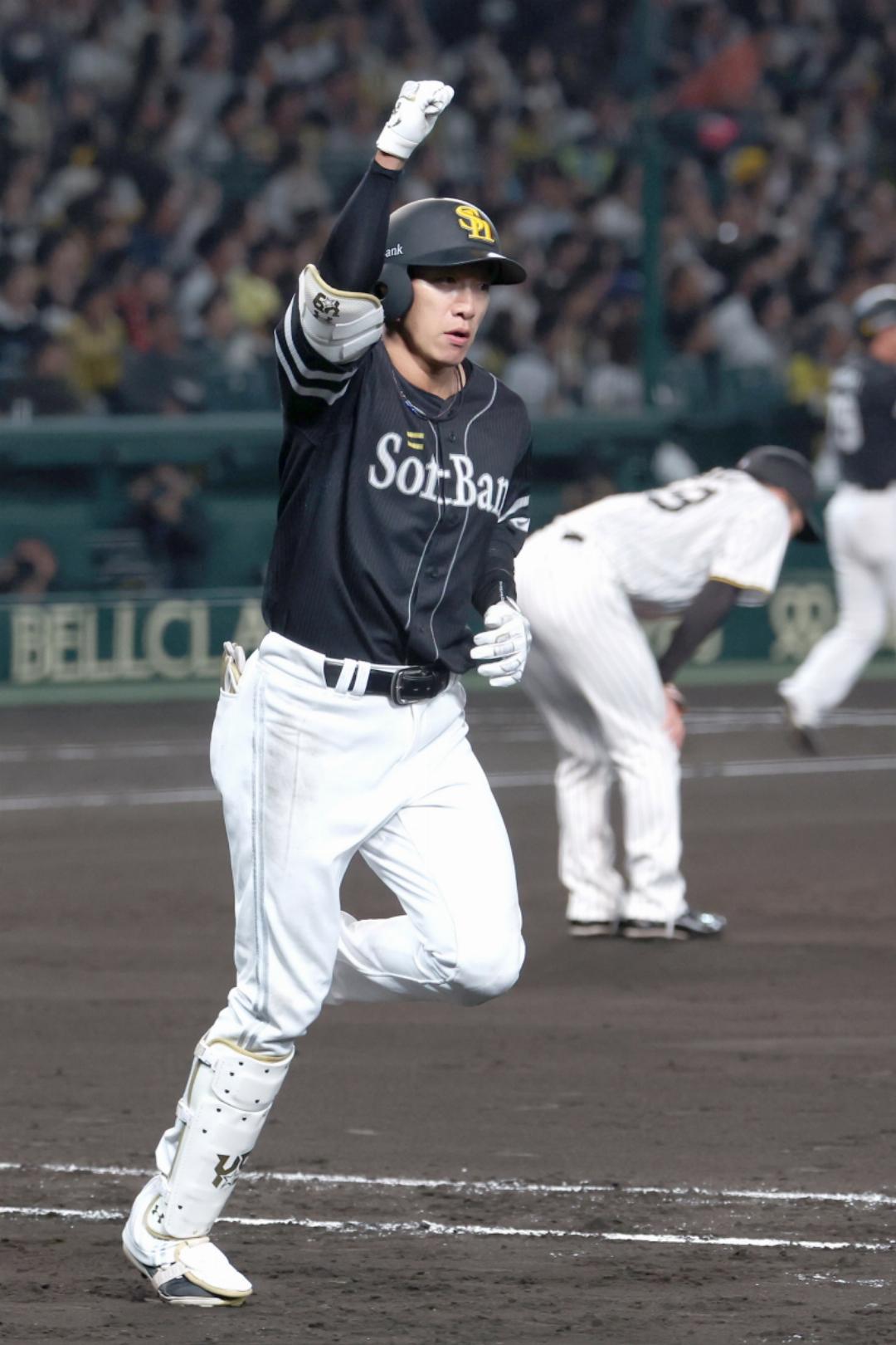 2点リードされた8回表、阪神・石井大智投手から同点となる2点本塁打を放った柳田悠岐外野手
