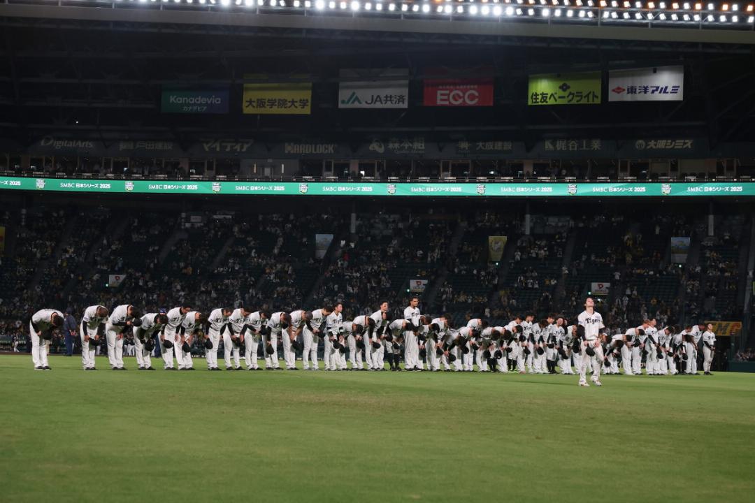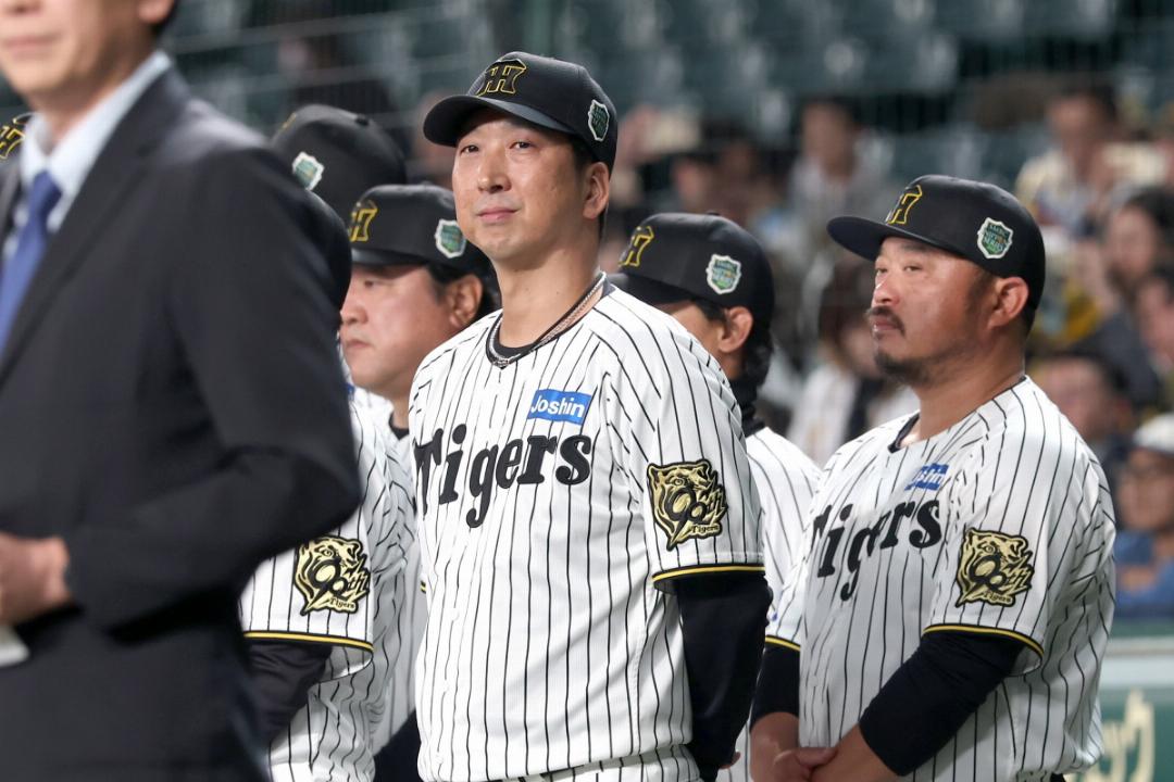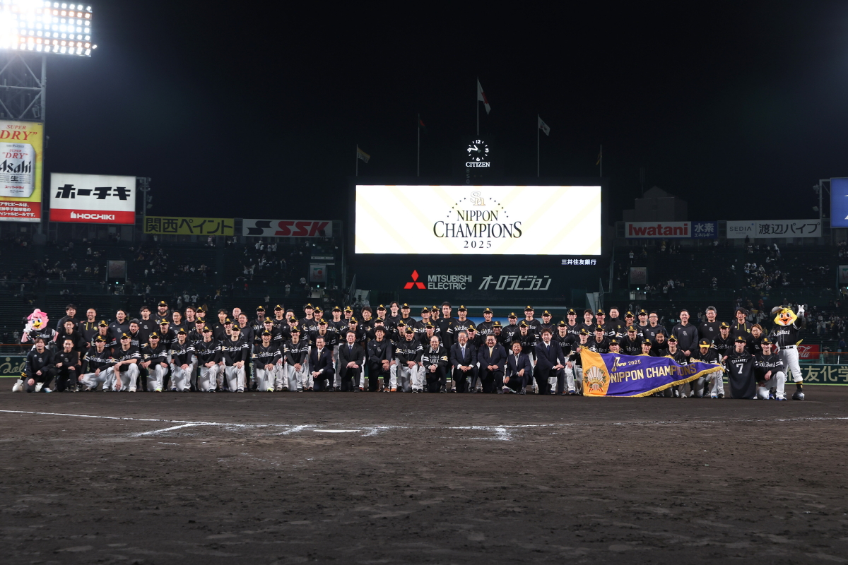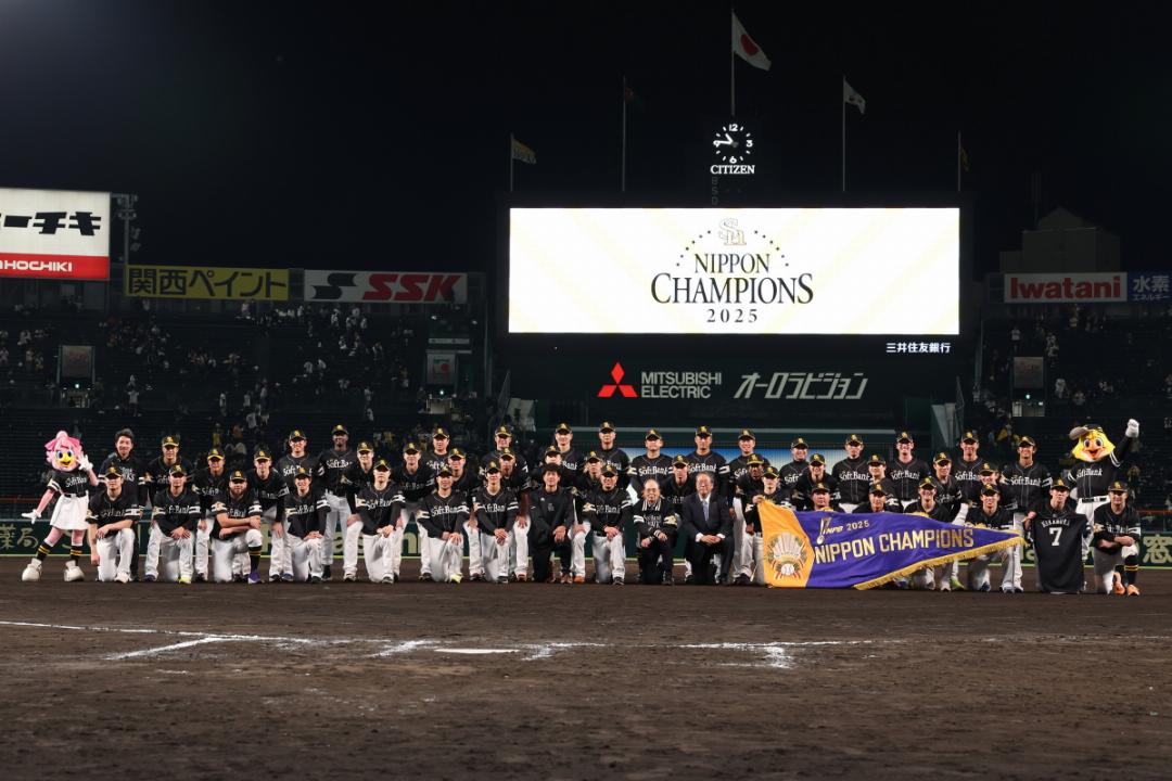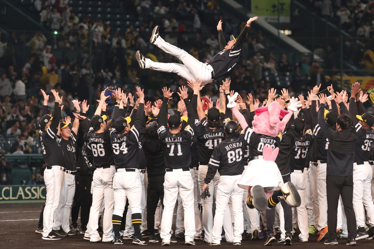 優勝セレモニーを見つめる阪神タイガースナイン。甲子園で1度も勝てず3連敗を含む4タテを喫した