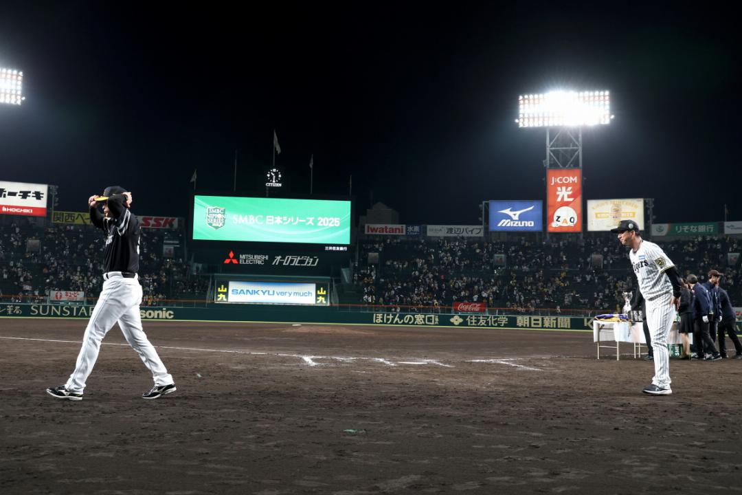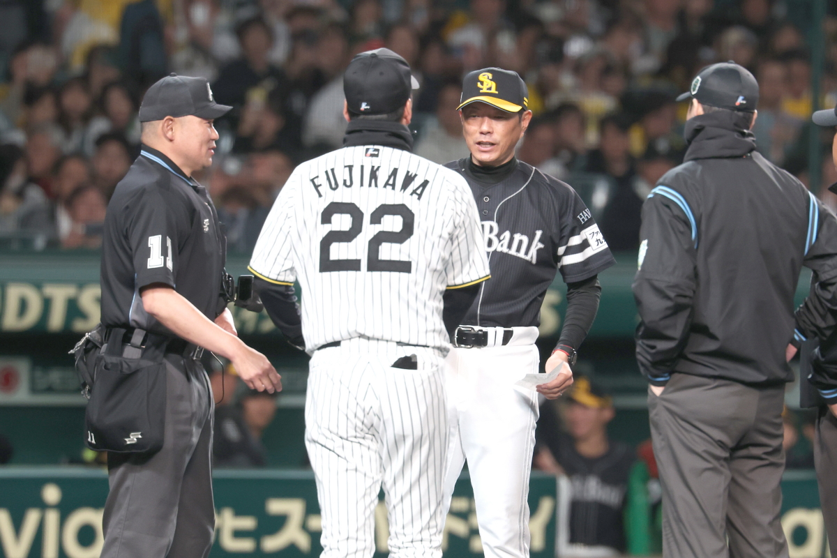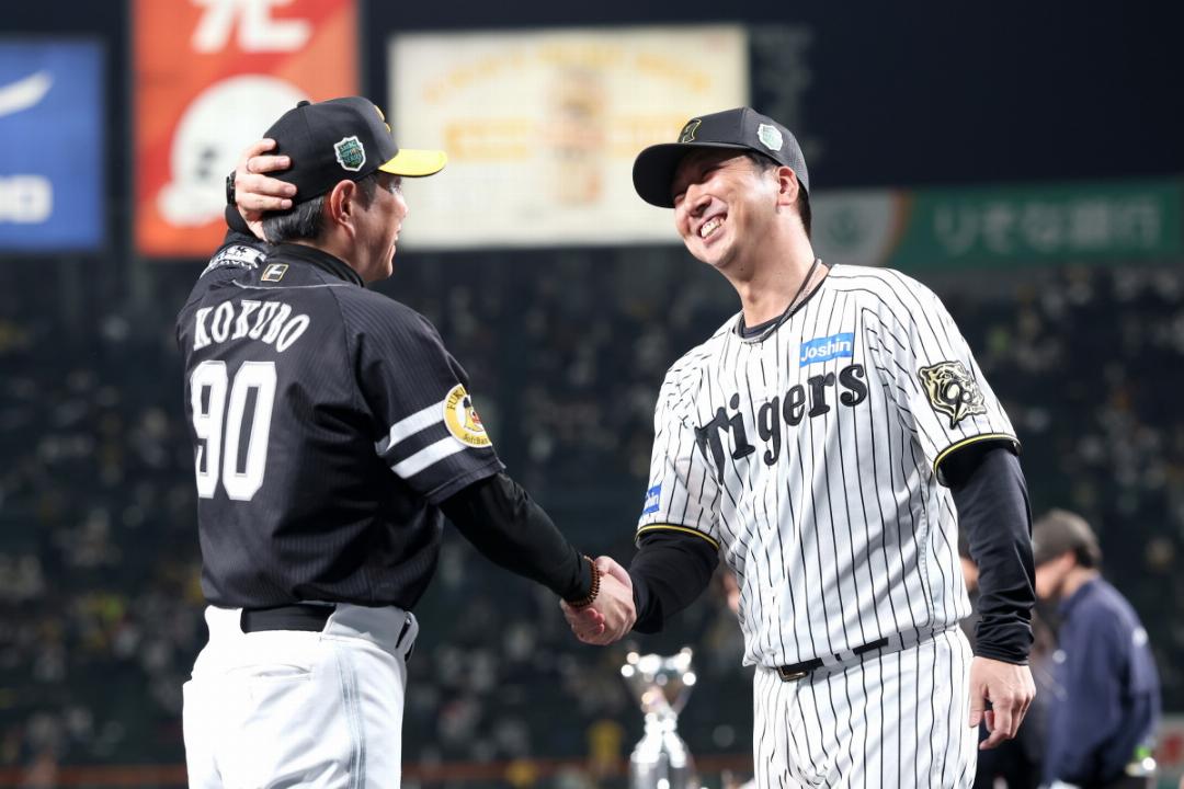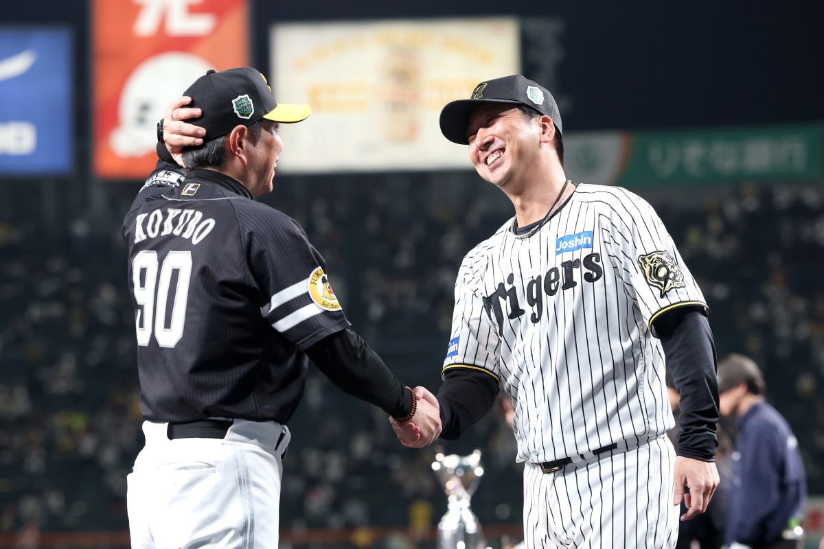 小久保裕紀監督と健闘を称えあう藤川球児監督