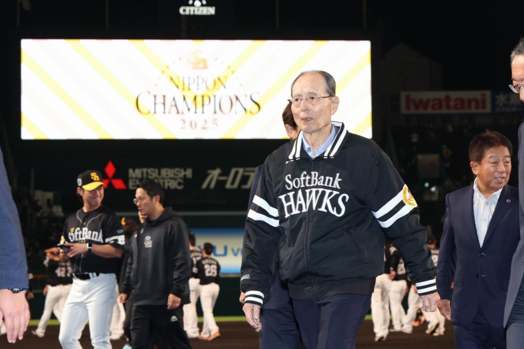 王貞治会長を中心に集合撮影をおこなう福岡ソフトバンクホークスナイン