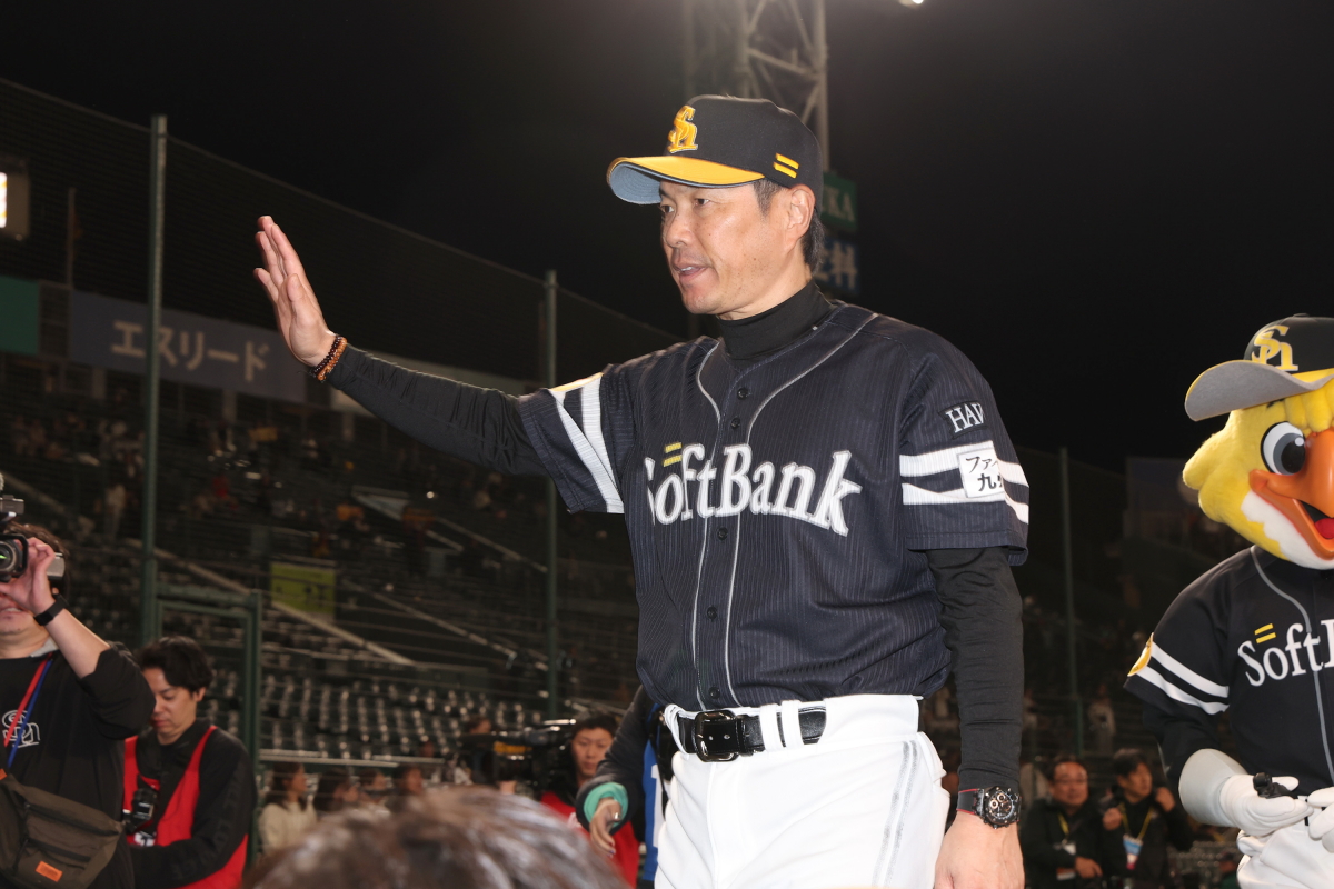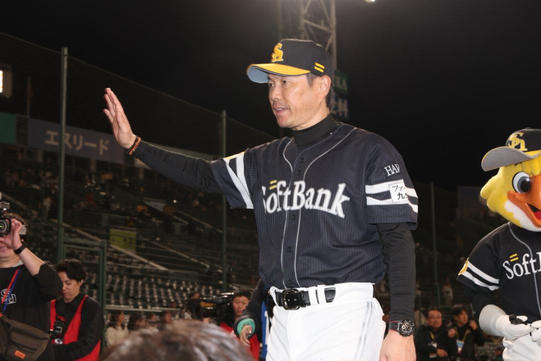 ファンの声援に応えグラウンドを後にする小久保裕紀監督