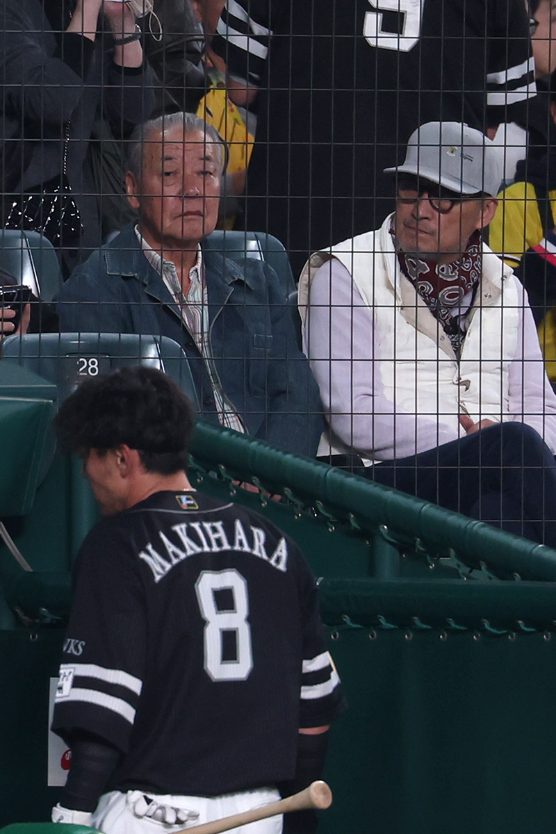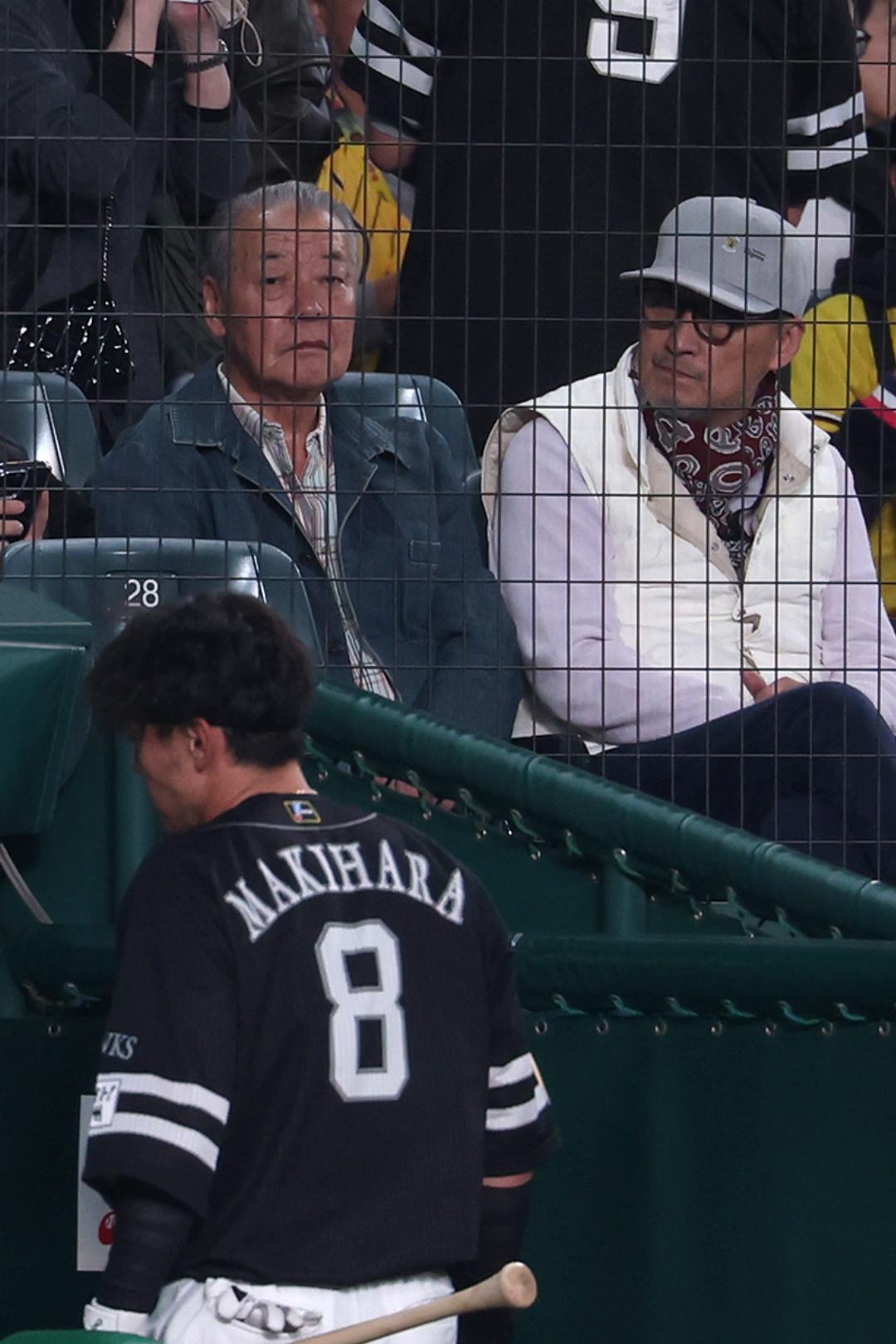 3戦目から観戦する福本豊氏と渡辺謙氏
