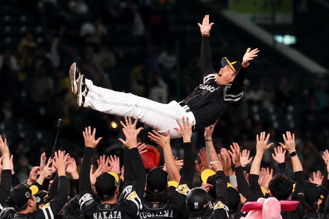 5年ぶり12回目の日本一を決め宙に舞う小久保裕紀監督