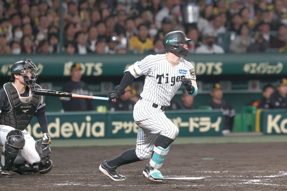 5回裏、追加点となるヒットを放った佐藤輝明内野手