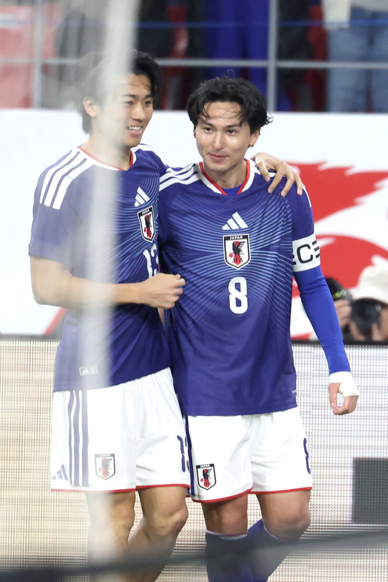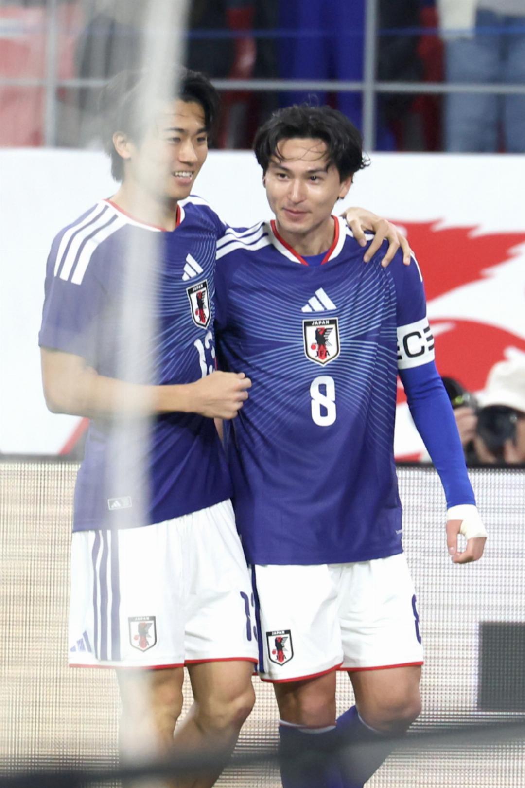中村敬斗と喜ぶ、先制のゴールを決めた南野拓実