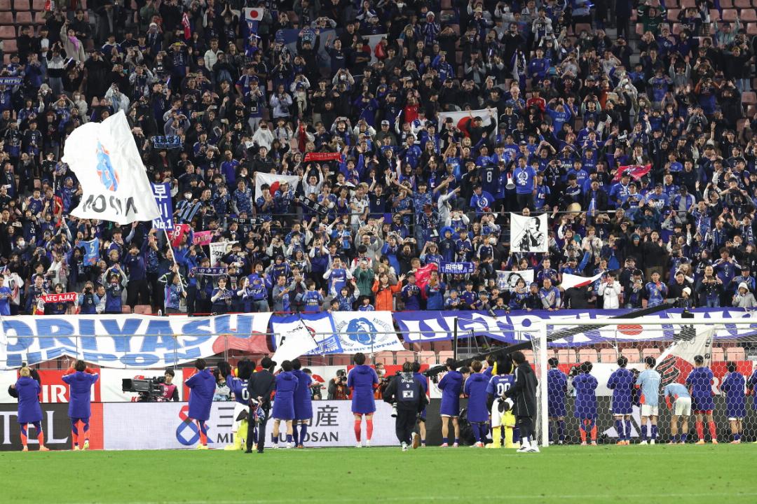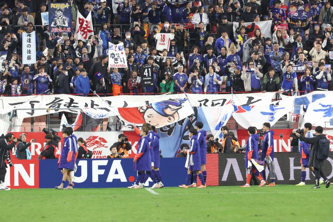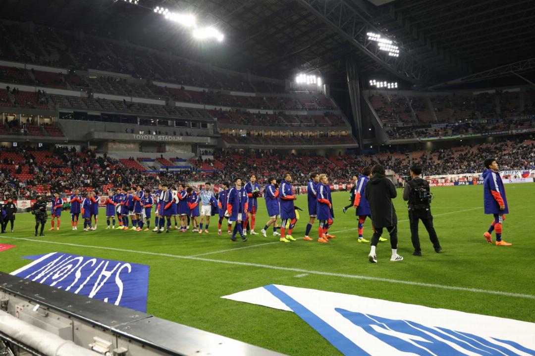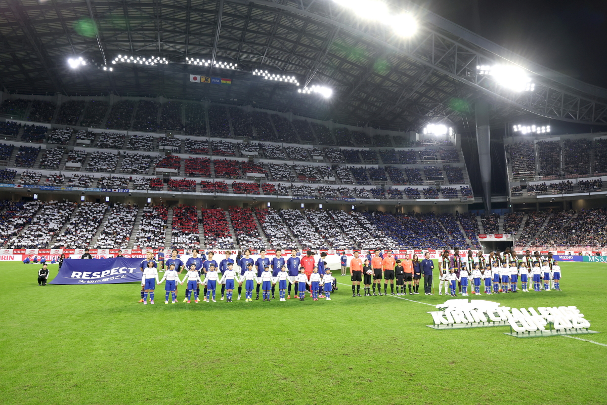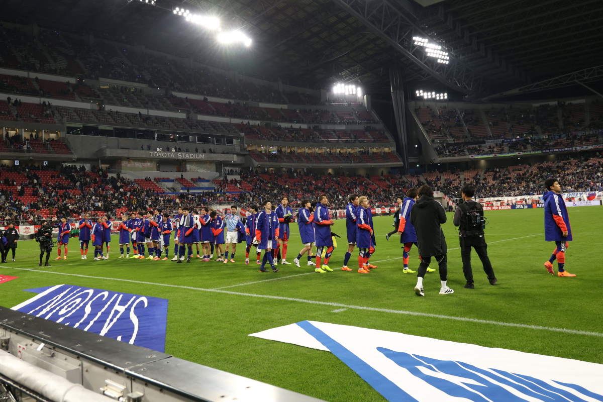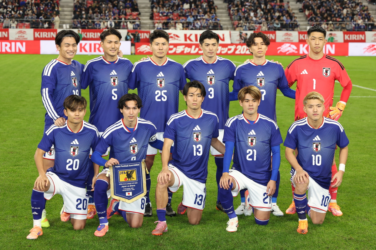 この試合から新デザインのユニフォームで試合に臨む日本代表イレブン