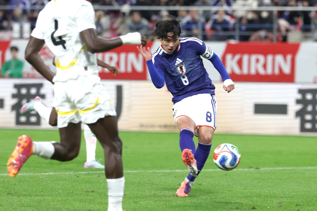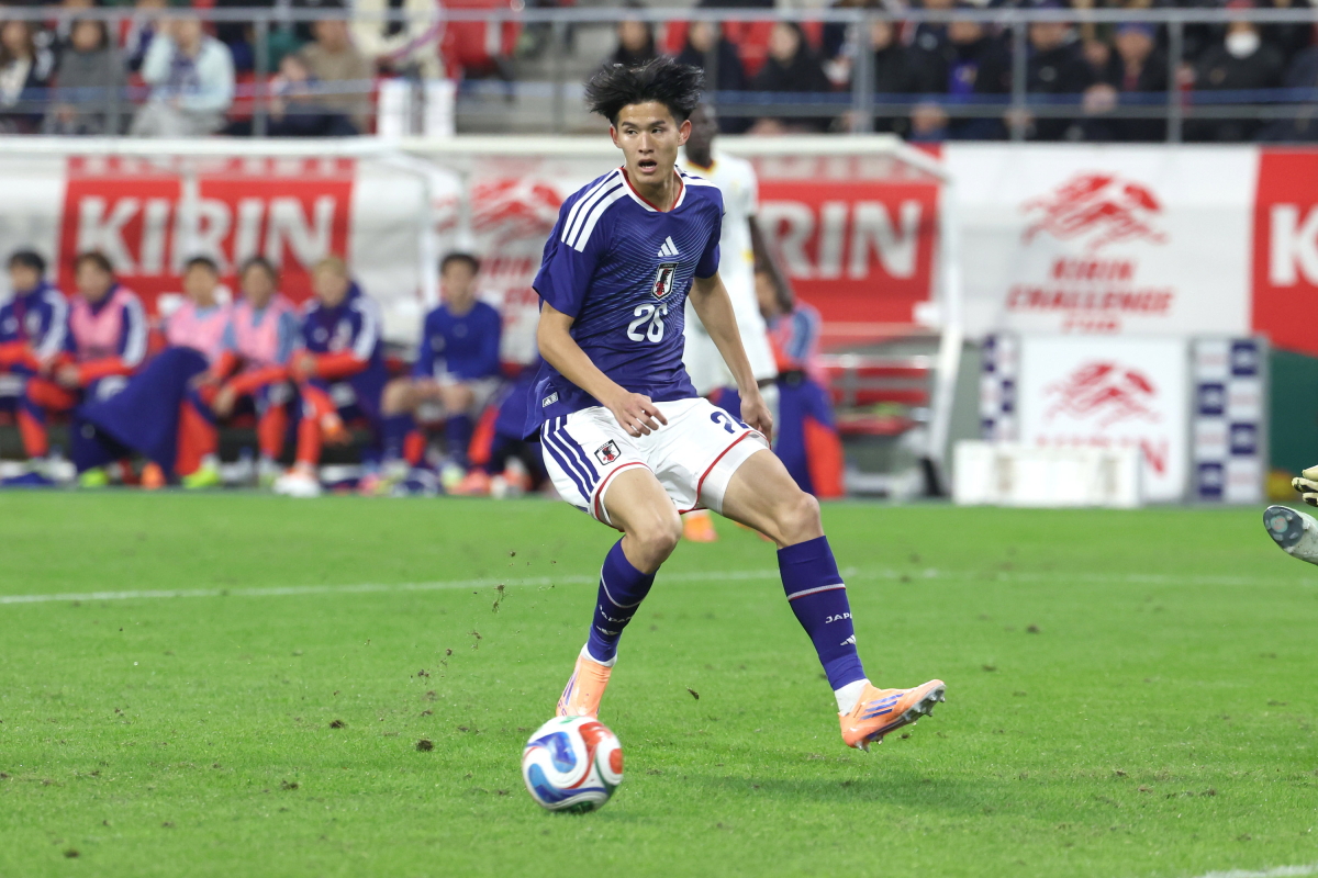 後半30分、久保建英と交代した代表初初出場のMF北野颯太