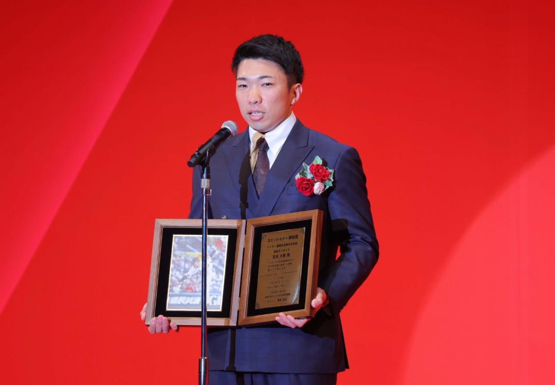 コミッショナー特別賞を受賞した阪神の石井大智 50試合連続無失点のプロ野球新記録を達成した