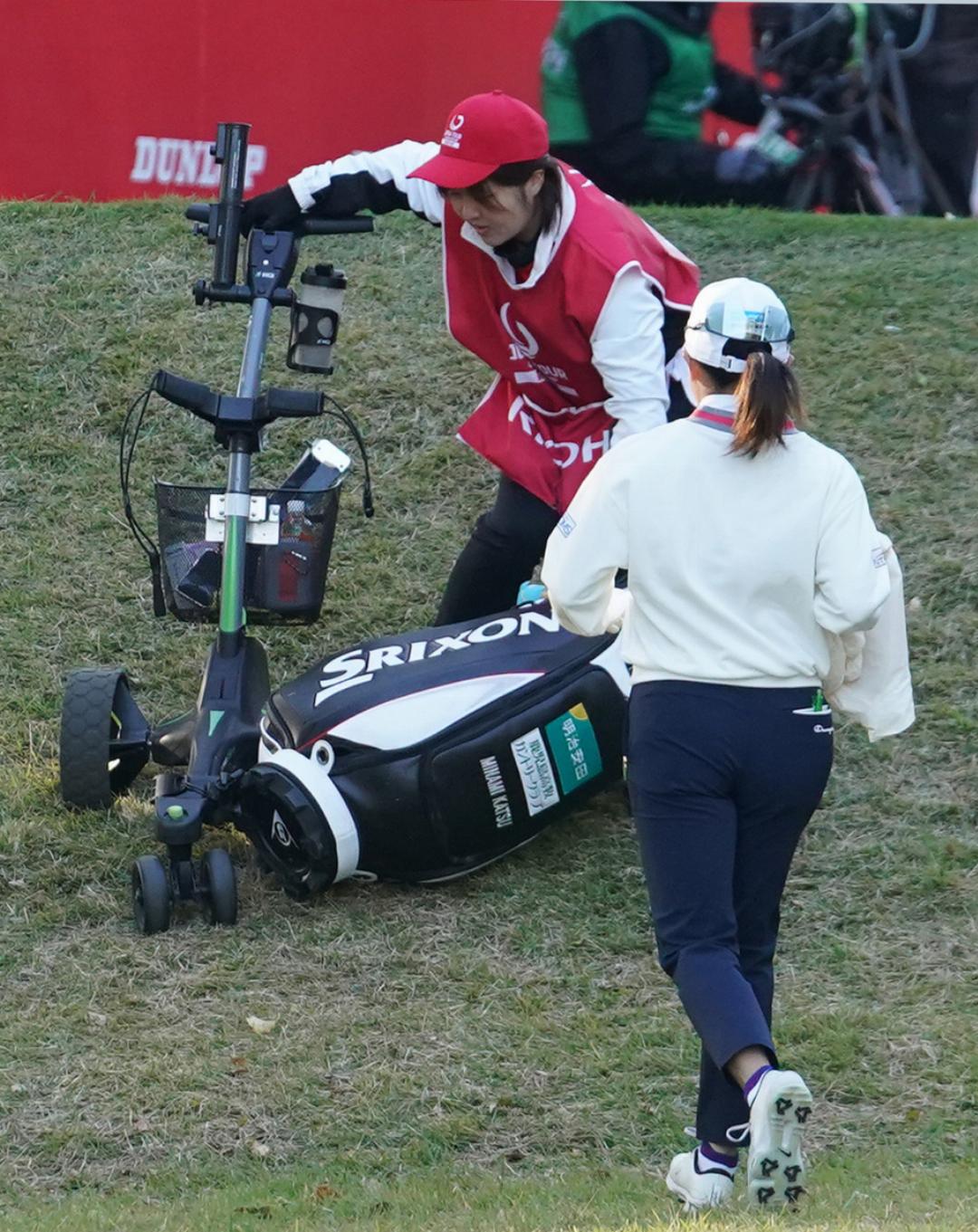 勝選手、キャディバッグが転がっても、スコアが転ばぬことを願います
