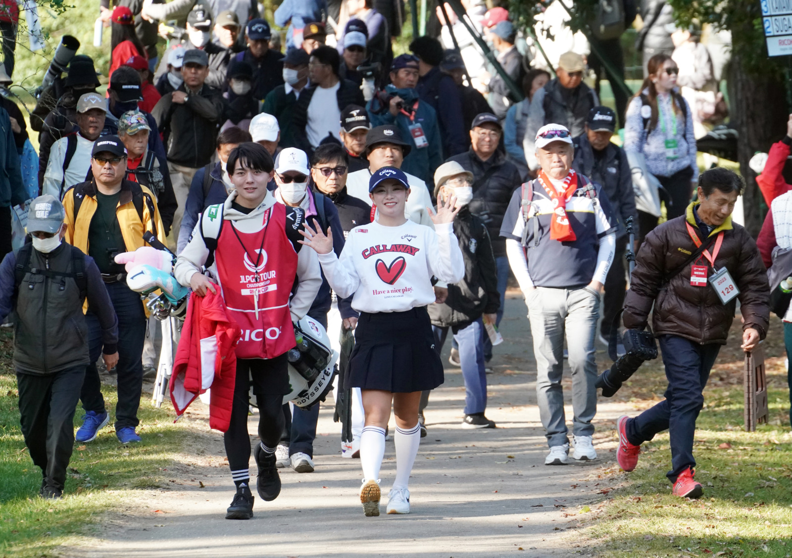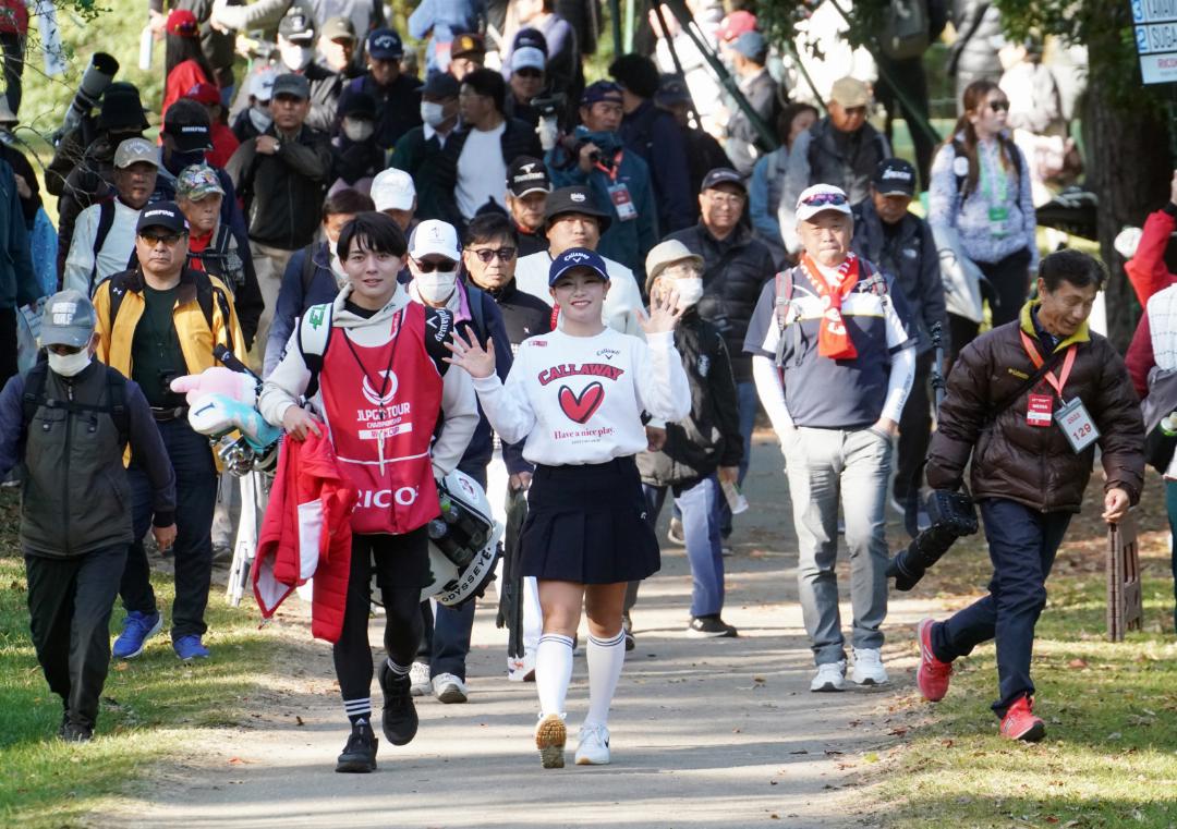 大勢のギャラリーとカメラマンを引き連れる30位タイの河本結