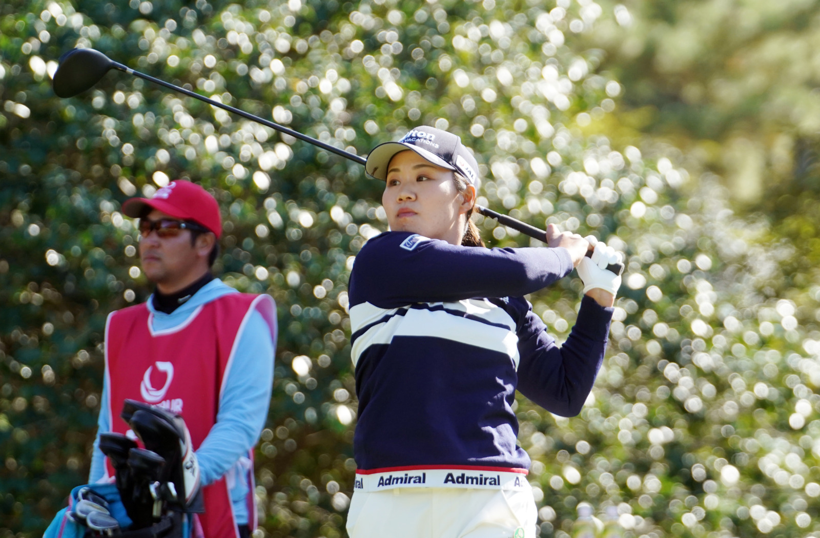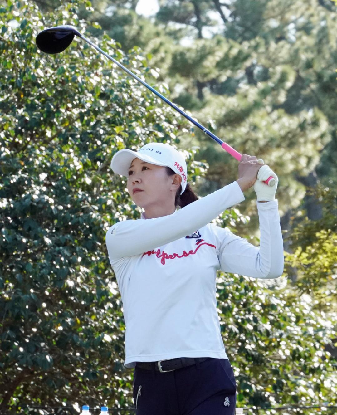 今季初優勝したニトリレディス以降、不調に悩まされた鈴木愛は通算5アンダーの2位タイの好位置。現在ツアー通算21勝、永久シード獲得の30勝に向けて今季最後の大一番に臨みます