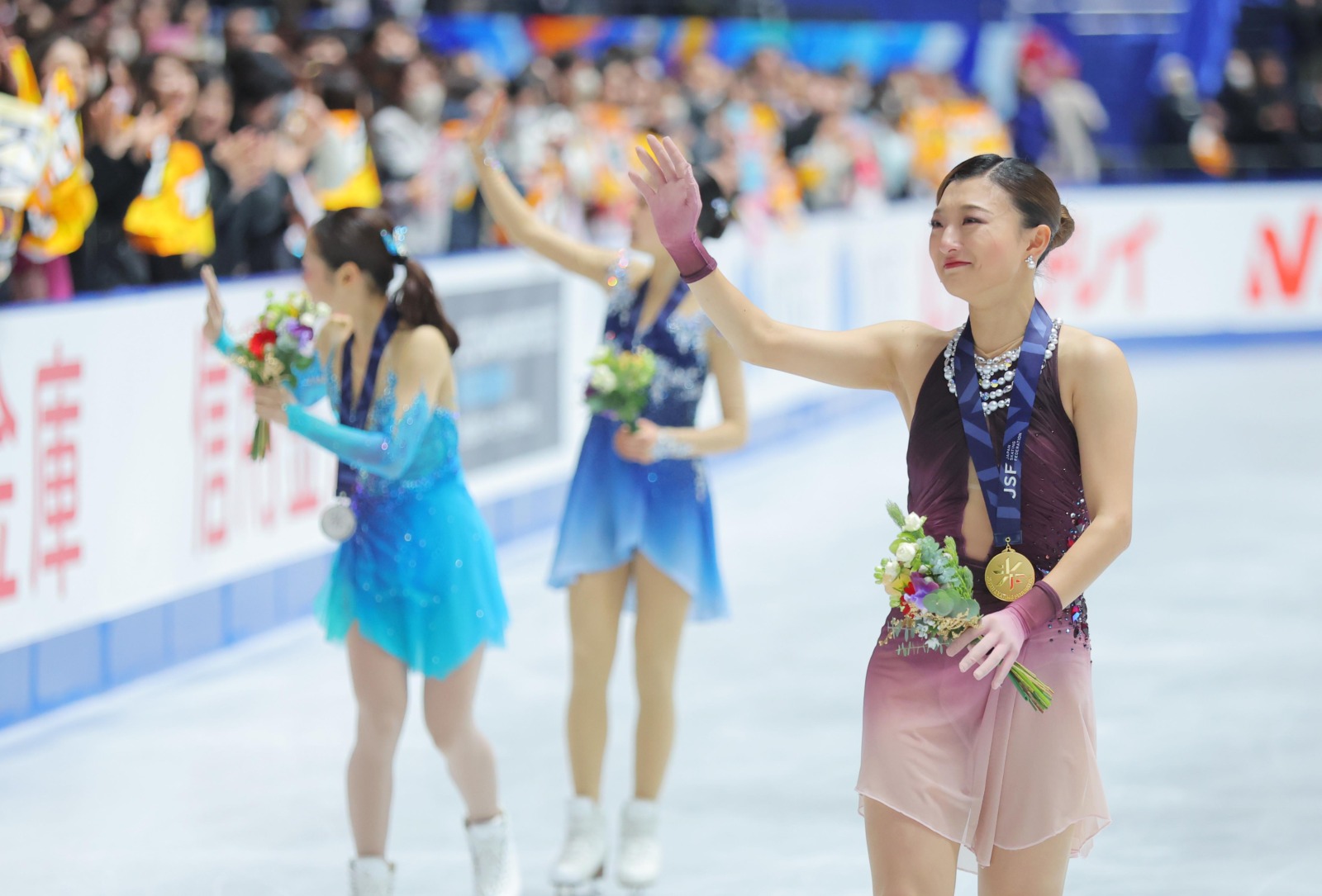 24 Photos12月21日、フィギュアスケート全日本選手権女子フリーがおこなわれ、坂本花織が5連覇を達成し五輪代表に決定した。2位に入った島田麻央は年齢制限で五輪に出場できず、3位の千葉百音と4位の中井亜美が初の代表に決定した。