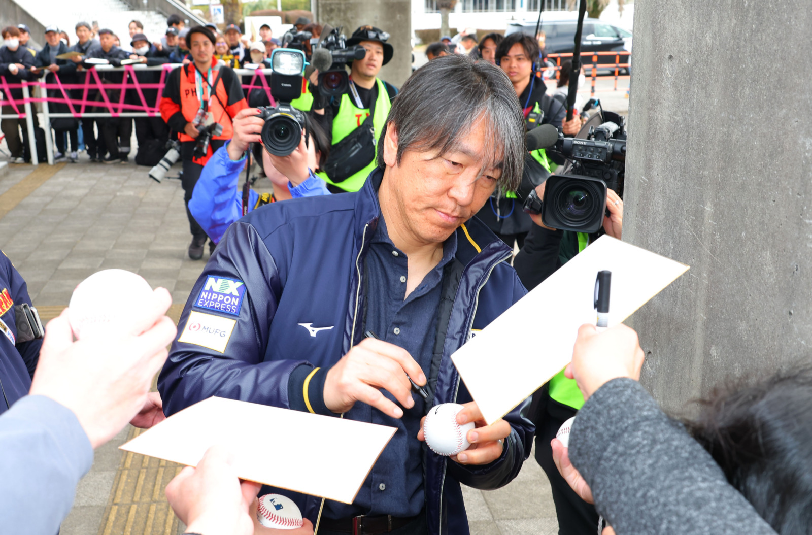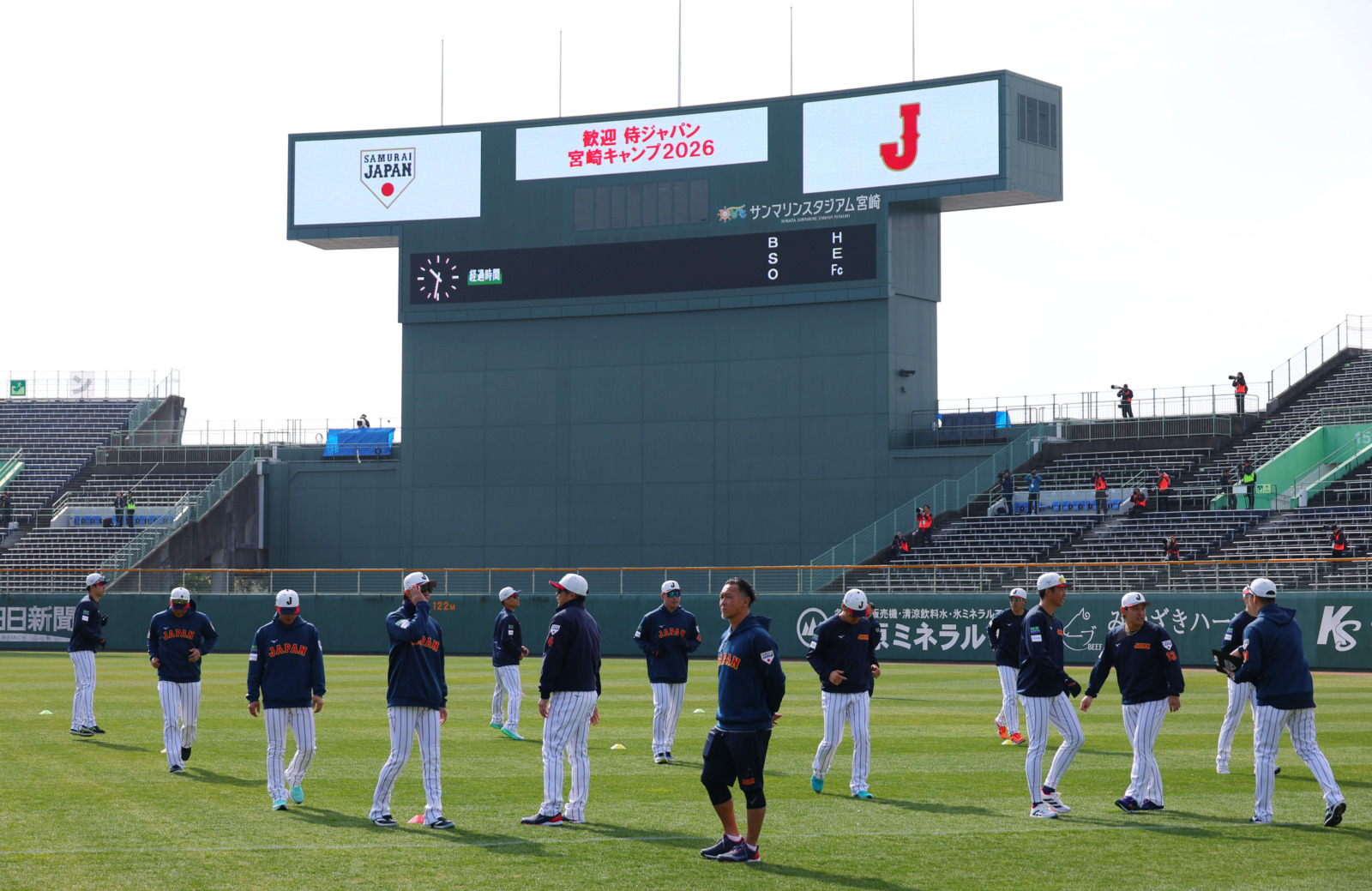 12 Photos14日、WBC連覇へ向け、侍ジャパン宮崎事前合宿がひなたサンマリンスタジアム宮崎でスタートした。前大会優勝メンバーのダルビッシュ有がアドバイザーとして加わり、日米通算507本塁打の松井秀喜氏がチームを激励に訪れた。
