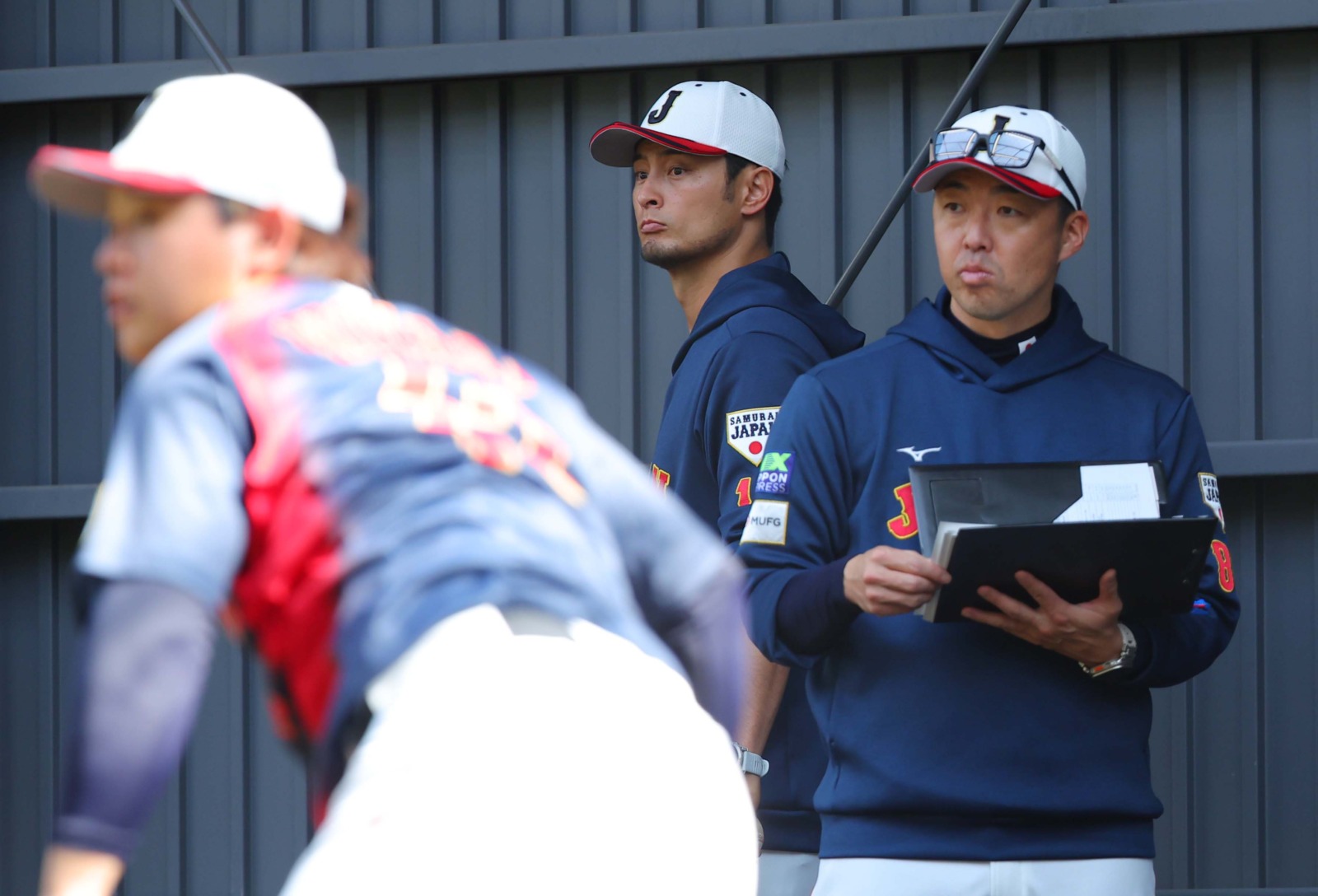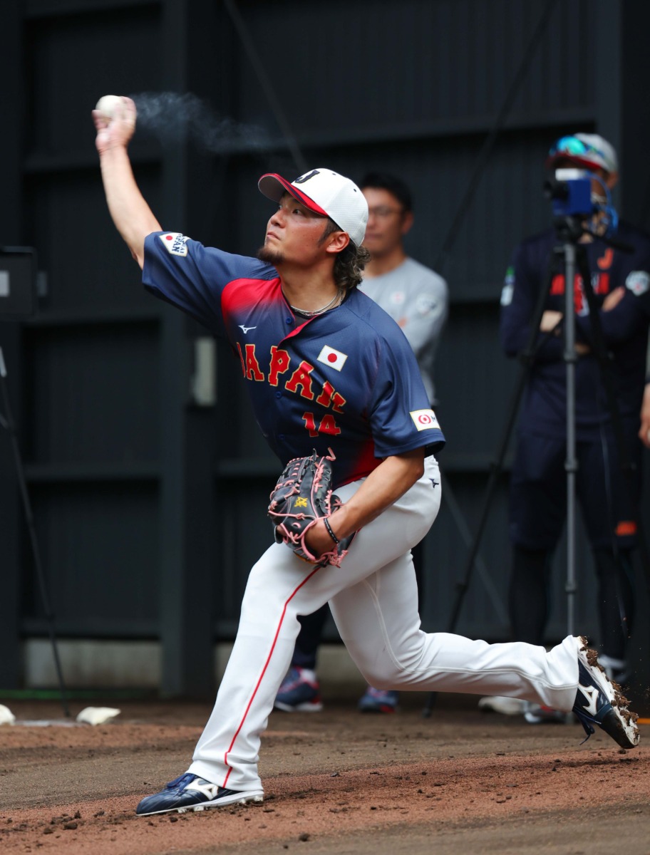 15日、侍ジャパン宮崎事前合宿がひなたサンマリンスタジアム宮崎で2日目を迎えた。この日はダルビッシュ有臨時アドバイザーが見守る中、多くの投手がブルペン入りし調整をおこなった。