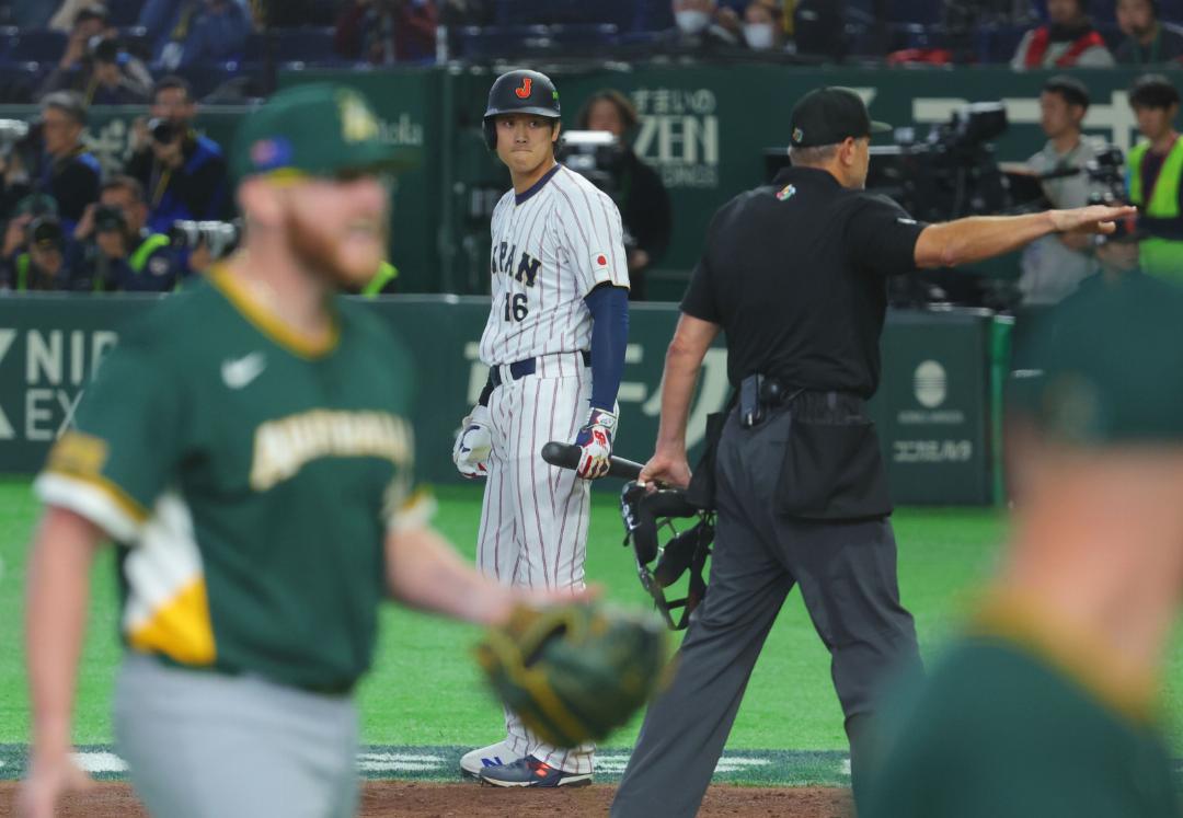 4回、2死満塁で大谷翔平の打席、先制のチャンスもセカンドランナーの牧秀悟が捕手に刺され好機を逸す