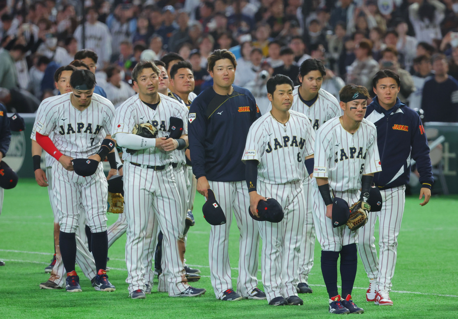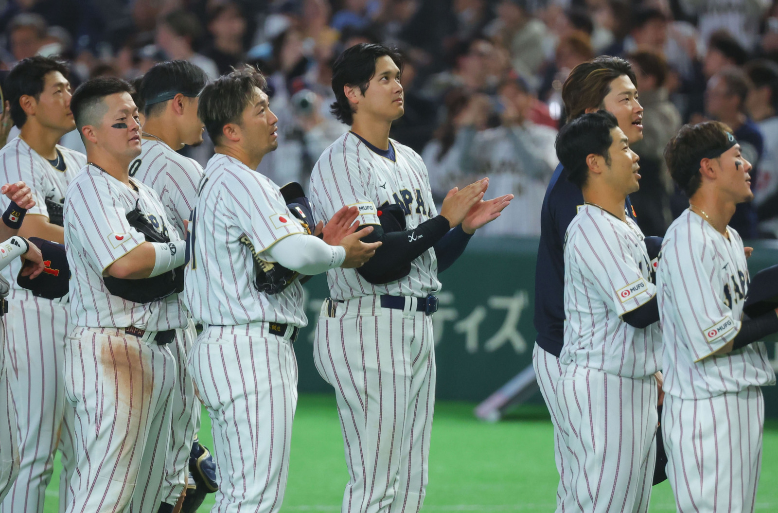 試合終了後、天皇皇后両陛下、愛子さまを見送る大谷翔平と日本代表選手たち