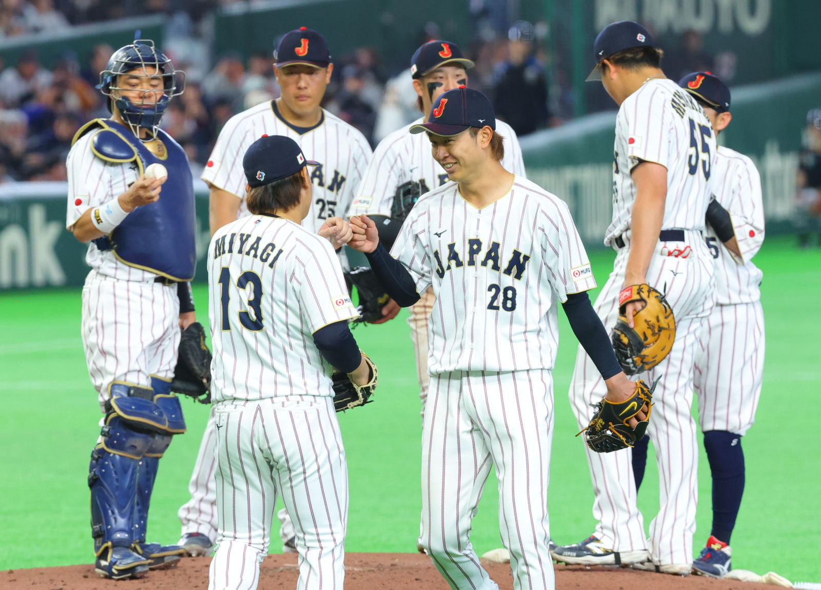 18 Photos10日、ワールドベースボールクラシック(WBC)1次ラウンド、日本対チェコ(東京ドーム)がおこなわれた。まさかの投手戦の展開に後半まで0が並ぶも、8回の周東佑京の3ラン、そして村上宗隆の満塁HRで、終わってみれば9-0で日本が勝利。C組1位でローンデポ・パークでおこなわれる準々決勝へ駒を進めた。