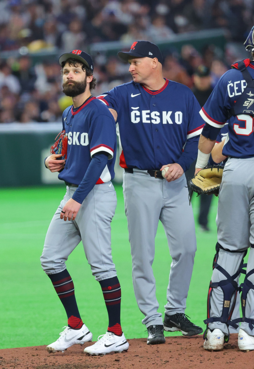 この試合が代表引退試合となるチェコの先発サトリア。日本の打線を翻弄し、5回途中を無失点