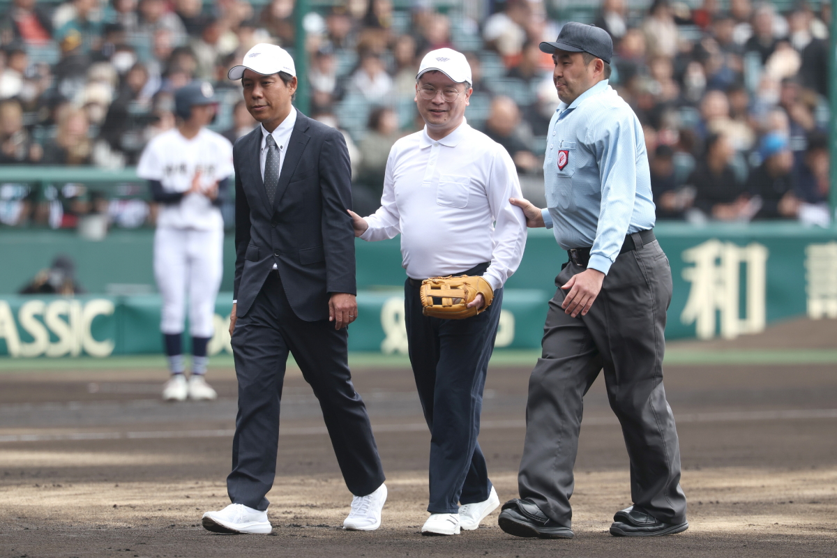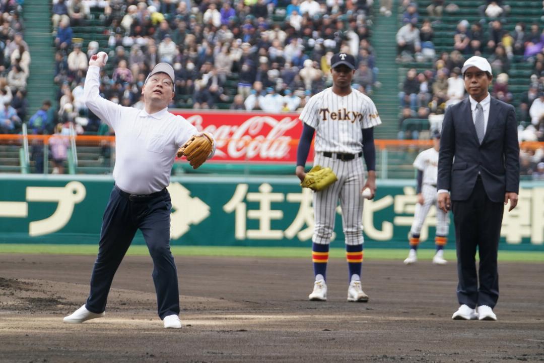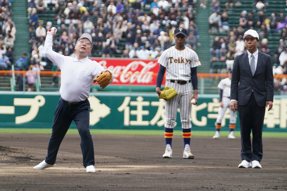 始球式をおこなった河合純一スポーツ庁長官