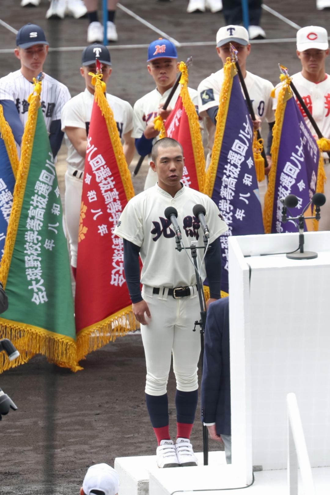 選手宣誓をおこなった北照(北海道)の手代森煌斗主将