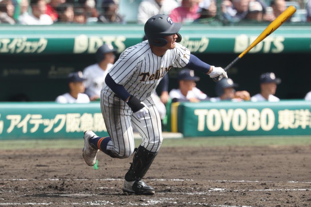 1点リードされた8回裏、帝京の蔦原悠太内野手が2点2塁打を放ち逆転