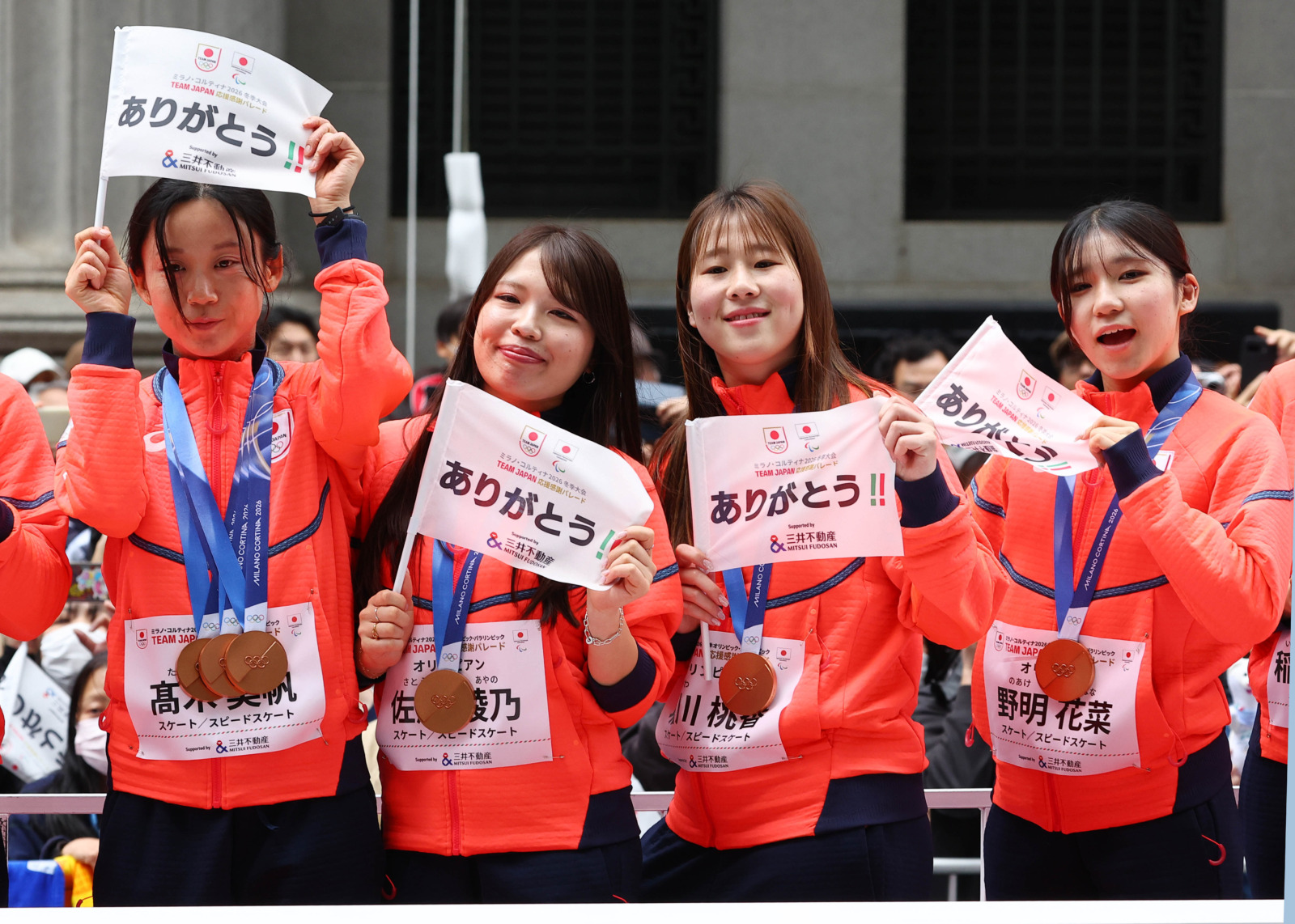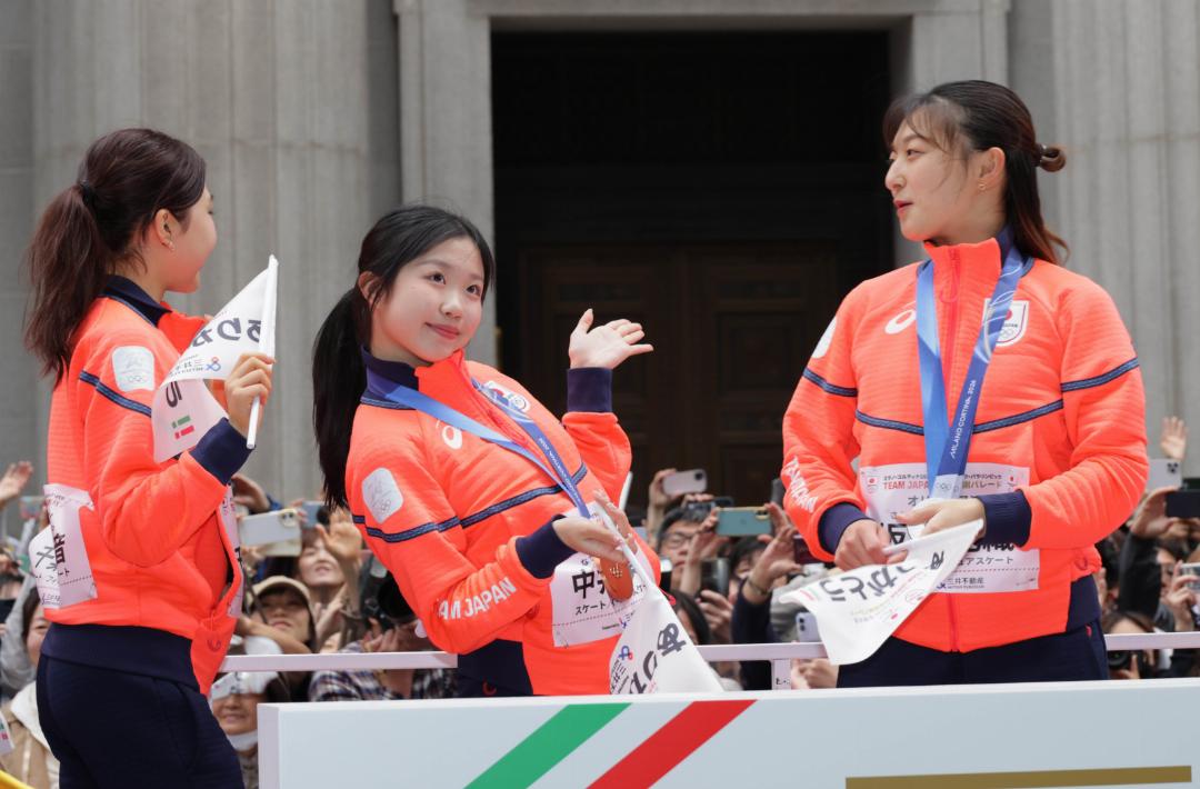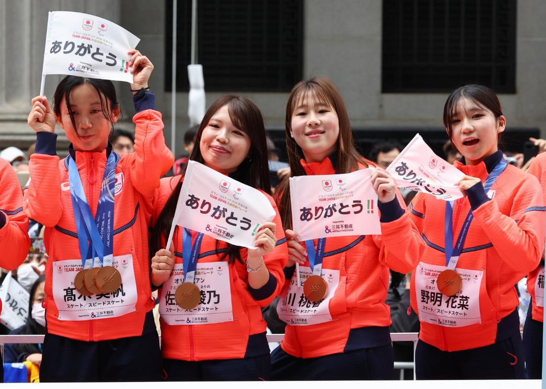 スピードスケート女子で銅メダル3個を獲得し、現役を引退した高木美帆と女子パシュートで銅メダルを獲得した佐藤綾乃、堀川桃香、野明花菜