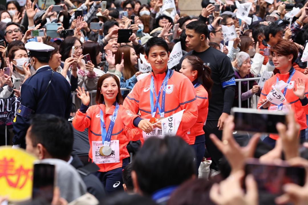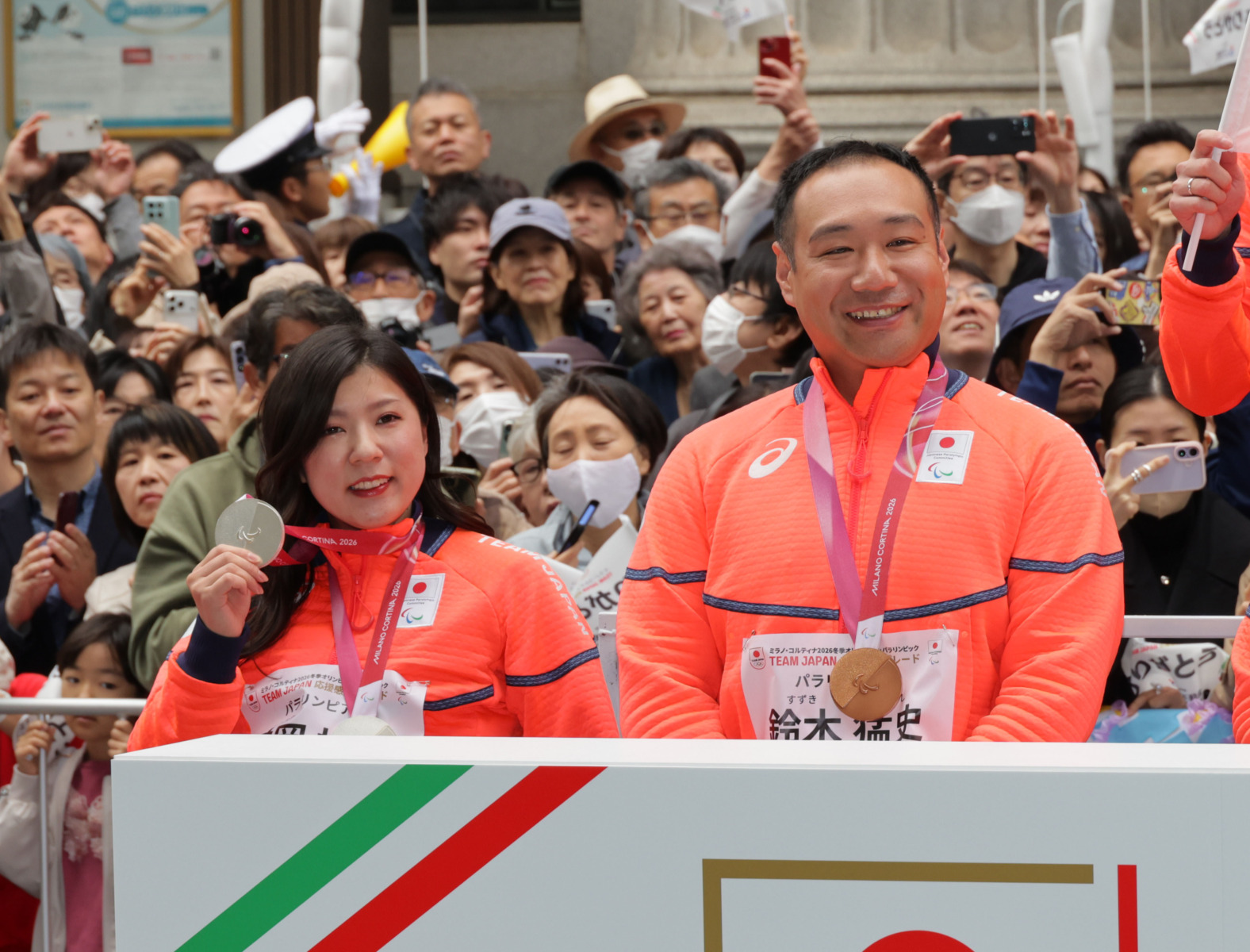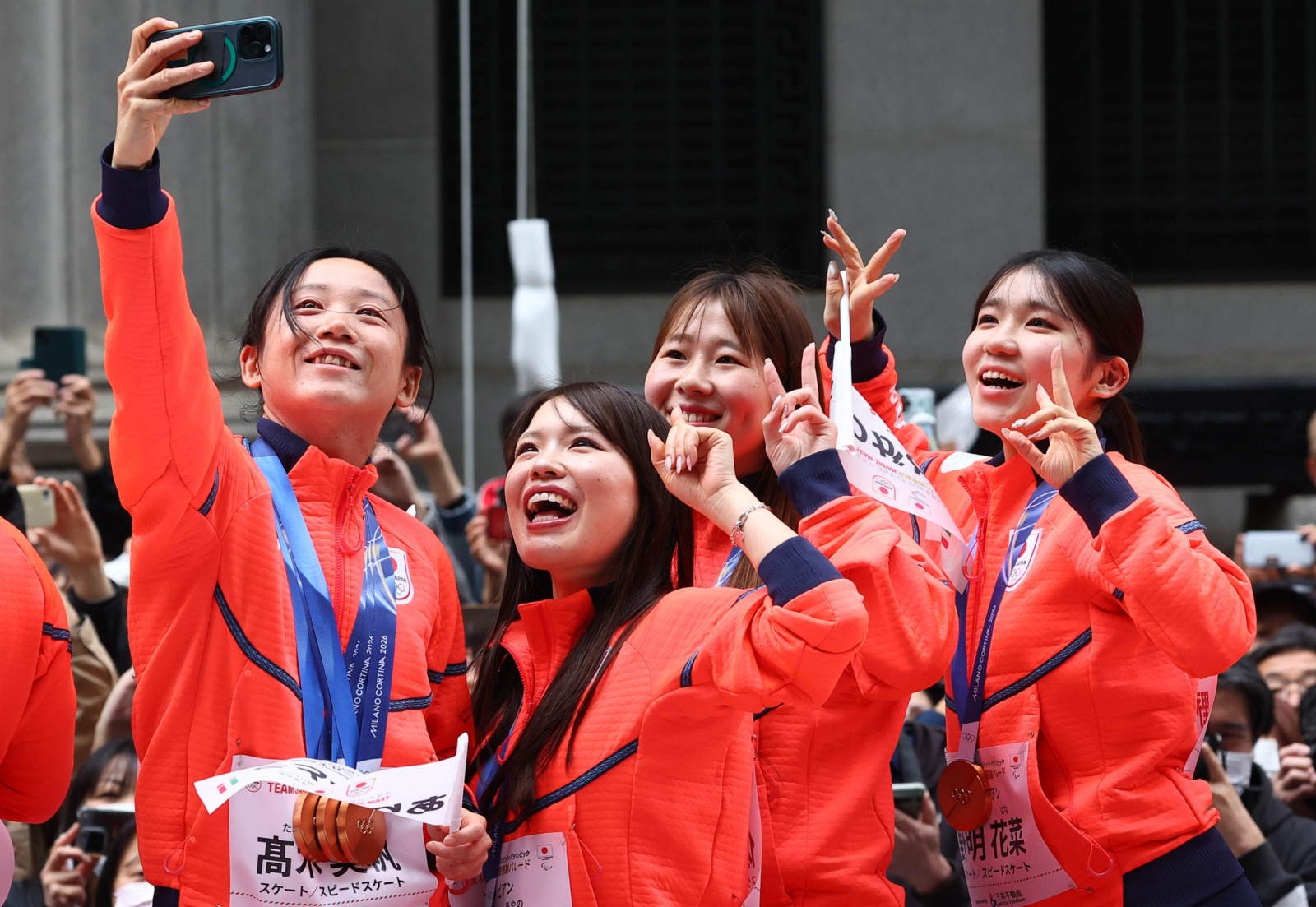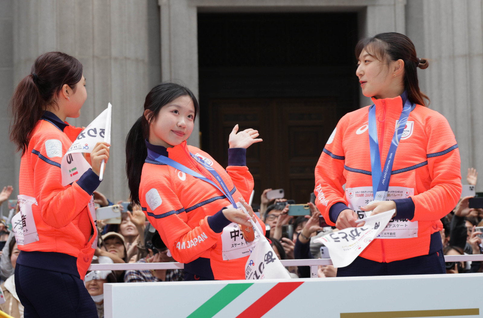 14 Photos25日午前、東京・日本橋でミラノ・コルティナ冬季五輪・パラリンピック日本選手団による応援感謝パレードが開催された。冬季大会では初の実施で、100人を超える選手が参加し、沿道には多くの観客が詰めかけ大歓声が上がった。フィギュアの「りくりゅう」らメダリストも笑顔で手を振り、声援に応えた。