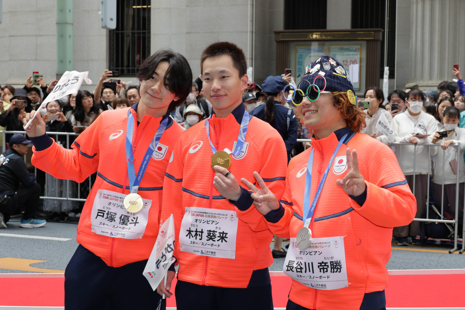 ハーフパイプ金メダル戸塚優斗、ビッグエア金メダル木村葵来、スロープスタイル銀メダル長谷川帝勝